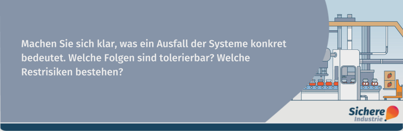 Um die Maßnahmen und Vorgehensweisen am konkreten Bedarf auszurichten, müssen die Folgen eines Systemausfalls identifiziert und bewertet werden.